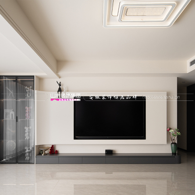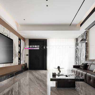 木質(zhì)材料與巖板拼接的電視墻,內(nèi)嵌電視與柜體融合,不落地的外觀多了幾分輕盈和時尚氣息。看似簡單的搭配,卻以利落的線條與塊面,組合出一個簡約不簡單的視覺中心,極簡卻永不過時。