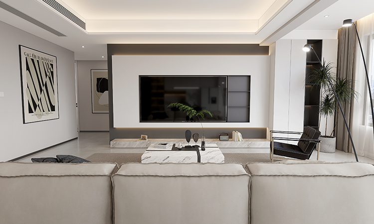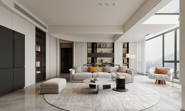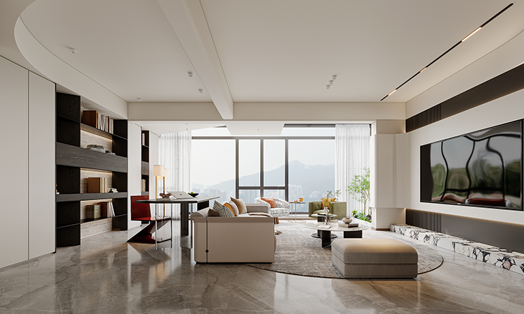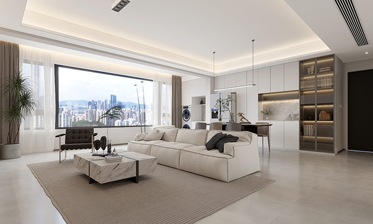 將陽臺納入客廳,橫廳劃分成客廳與書房,實現一廳多用。各空間定制大量儲物柜,滿足不同收納需求。多功能套房布局確保每位居者都有專屬空間,迎合居者對高品質生活的追求。